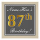Póster Elegante, gris, falso oro 87 cumpleaños + nombre