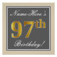Póster Elegante, gris, falso oro 97 cumpleaños + nombre