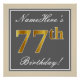 Póster Elegante, Gris, Faux Gold 77th Birthday + Nombre