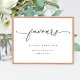 Elegante cartel de "Favors" con hermosos detalles modernos de caligrafía escrita a mano. 10" x 8" es sólo nuestro tamaño por defecto, este signo está disponible en varios tamaños. Fácil de enmarcar o, alternativamente, pegar/grapar en MDF baratos. También está disponible el mismo diseño con los "favores" en inglés americano. Este diseño forma parte de nuestra colección "Modern Elegant Wedding and Events Signage" con una variedad de carteles de coordinación disponibles.