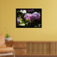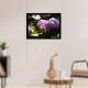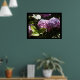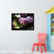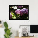 Hermosa manera de vestir su pared con esta elegante huella de hidrangea. Enmarcado por un malva de borde negro e hidráneas rosas enclavadas en su follaje verde. El sol sólo atrapa las hojas.