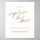 Este elegante letrero de caligrafía dorada "captura el amor" es perfecto para una boda sencilla. El diseño neutral presenta un cartel minimalista decorado con tipografía romántica y caprichosa de falso foil dorado. El letrero dice "ayúdanos a capturar el amor usando el hashtag: tu hashtag".