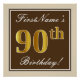 Póster Elegante, marrón, falso oro 90 cumpleaños + nombre