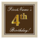 Este sencillo y elegante diseño de poster de cumpleaños incluye un mensaje personalizado como "¡El cuarto cumpleaños de FirstName!" (con el "cuarto" con un aspecto de color falso/imitación de oro) dentro de un área cuadrada de color marrón con un simple contorno fronterizo. El nombre se encuentra en un texto elegante de color blanco tipo script, y se puede personalizar. Un poster de fiesta de cumpleaños personalizado como este podría ser usado como decoración en un fiesta que está siendo retenido por alguien que está celebrando su cuarto cumpleaños. [~Z0000240]