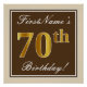 Póster Elegante, marrón, oro falso 70 cumpleaños + nombre