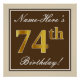 Póster Elegante, marrón, oro falso 74 cumpleaños + nombre