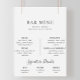 Complementa tu clásico evento de boda con este elegante menú de bar de boda minimalista.