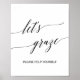 Este póster de mesa de comida let's graze con elegante caligrafía negra es perfecto para una boda sencilla. El diseño neutral presenta un póster minimalista decorado con tipografía romántica y caprichosa.