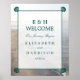 Elegante Monograma y Verde azulado Cartel de bienvenida de la boda en la playa de vieira por sello de Stampedy.