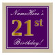 Póster Elegante, Morado, Dorado Falso Cumpleaños 21 + Nom