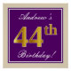 Póster Elegante, morado, falso oro 44 cumpleaños + nombre