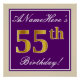 Póster Elegante, morado, oro falso 55 cumpleaños + nombre