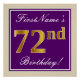 Póster Elegante, morado, oro falso 72 cumpleaños + nombre