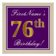 Póster Elegante, morado, oro falso 76 cumpleaños + nombre