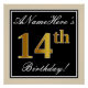 Póster Elegante, negro, falso oro 14 cumpleaños + nombre