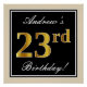 Póster Elegante, negro, falso oro 23 cumpleaños + nombre