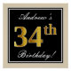Póster Elegante, negro, falso oro 34 cumpleaños + nombre