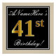 Póster Elegante, negro, falso oro 41 cumpleaños + nombre
