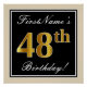 Póster Elegante, negro, falso oro 48 cumpleaños + nombre