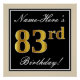 Póster Elegante, negro, falso oro 83 cumpleaños + nombre