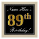 Póster Elegante, negro, falso oro 89º cumpleaños + nombre