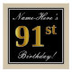 Póster Elegante, negro, falso oro 91 cumpleaños + nombre