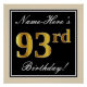 Póster Elegante, negro, falso oro 93 cumpleaños + nombre
