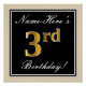 Póster Elegante, negro, falso oro tercer cumpleaños + nom