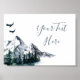 Póster de elegante paisaje de montañas forestales en acuarela.