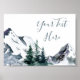Elegante cartel de paisaje de montañas forestales en acuarela.