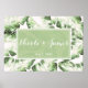 Póster Elegante pancarta de boda con hojas tropicales bla