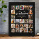 Moderno poster de collage de imágenes de graduación con un elegante fondo negro que se puede cambiar a cualquier color, fotos de 24 cuadrados para que puedas personalizar con tus propias imágenes, y una plantilla de texto simple que es fácil de personalizar.