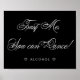Esta hermosa y atemporal señalización horizontal "Confía en mí que puedes bailar, alcoholismo" humorística añade una elegancia simple a cualquier recepción nupcial clásica, ducha o motivo fiesta. El lujoso diseño de guiones cuenta con una original y romántica caligrafía blanca moderna. El bonito tipo de letra con un color de fondo de personalizable facilita la adaptación a cualquier tema. Para otros colores o productos a juego, por favor visite la tienda JustFharryn Zazzle, o contacte con el diseñador, c/o Fharryn@yahoo.com Todos los derechos reservados. #zazzlemade