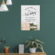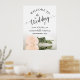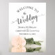 Presenta tu celebración boda con estilo con este impresionante cartel. Su diseño es a la vez sofisticado y sobrio, con una delicada caligrafía de guión y un elegante rosa de color melocotón pálido de tallo largo reflejado en un estanque de agua, con olas y ondas. Esta exquisita pieza es el toque perfecto para saludar a sus huéspedes en su día.