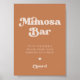 Señal de boda de la barra de Mimosa. Un tema de moda retro: adoptar este diseño tipográfico vintage y elegante para tu papelería boda, con un tema de color azúcares marrones. Fácil de mezclar y emparejar con nuestra papelería similar disponible en naranja quemado, terracota y rosa melocotón. Personalizable completamente los colores y fondos de texto.