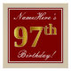 Póster Elegante, Rojo, Dorado Falso Cumpleaños 97; Nombre