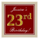 Póster Elegante, rojo, falso oro 23 cumpleaños; nombre pe