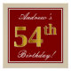 Este sencillo y elegante diseño de poster de cumpleaños incluye un mensaje personalizado como "¡54º cumpleaños de Andrew!" (el "54º" tiene un aspecto de color falso/imitación de oro) dentro de un área cuadrada de color rojo con un sencillo contorno fronterizo. El nombre se encuentra en un texto elegante de color blanco tipo script, y se puede personalizar. Un poster de fiesta de cumpleaños personalizado como este podría ser usado como decoración en un fiesta que está siendo retenido por alguien que está celebrando su 54 cumpleaños. [~Z0000234]
