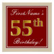 Este sencillo y elegante diseño de poster para fiestas de cumpleaños incluye un mensaje personalizado como "¡55 cumpleaños de FirstName!" (con el "55" con un aspecto de color falso/imitación de oro) dentro de un área cuadrada de color rojo con un simple contorno fronterizo. El nombre se encuentra en un texto elegante de color blanco tipo script, y se puede personalizar. Un poster de fiesta de cumpleaños personalizado como este podría ser usado como decoración en un fiesta que está siendo retenido por alguien que está celebrando su 55º cumpleaños. [~Z0000234]