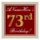 Póster Elegante, rojo, falso oro 73 cumpleaños; nombre pe