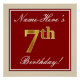 Este sencillo y elegante diseño de poster para fiestas de cumpleaños incluye un mensaje personalizado como "¡Nombra al sétimo cumpleaños de aquí!" (con el "séptimo" con un aspecto de color falso/imitación de oro) dentro de un área cuadrada de color rojo con un simple contorno fronterizo. El nombre se encuentra en un texto elegante de color blanco tipo script, y se puede personalizar. Un poster de fiesta de cumpleaños personalizado como este podría ser usado como decoración en un fiesta que está siendo retenido por alguien que está celebrando su sétimo cumpleaños. [~Z0000234]