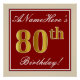Póster Elegante, rojo, falso oro 80 cumpleaños; nombre pe