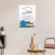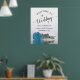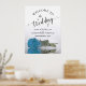 Presenta tu celebración boda con estilo con este impresionante cartel. Su diseño es a la vez sofisticado y sobrio, con una delicada caligrafía de guión y un elegante rosa de color azul turquesa o azul azulado de tallo largo reflejado en un estanque de agua, con olas y ondas. Esta exquisita pieza es el toque perfecto para saludar a sus huéspedes en su día.