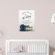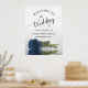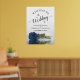 Presenta tu celebración boda con estilo con este impresionante cartel. Su diseño es a la vez sofisticado y sobrio, con delicada caligrafía de escritura y un elegante rosa de color azul de acero polvoriento de tallo largo reflejado en un estanque de agua, con olas y ondas. Esta exquisita pieza es el toque perfecto para saludar a sus huéspedes en su día.