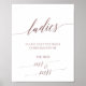 Esta elegante caligrafía de oro rosa señoras seña de baño es perfecta para un simple boda. El diseño rosa oscuro presenta un poster minimalista decorado con una tipografía romántica y caprichosa de imitación rosa de Relieve metalizado dorado. El cartel dice "Señoras, por favor, ayúdense a ustedes mismos cumplidos con los recién casados". Nota: Este diseño no tiene Relieve metalizado de oro rosa real. Es un gráfico de alta calidad hecho para parecer un Relieve metalizado de oro rosa.