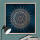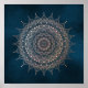 Magnífico poster circular de diseño de mandala floral, de rosa dorado sobre fondo verde azulado profundo, inspirado en el arte corporal de la henna mehndi. Este arte meditativo se suma a la decoración de la casa.