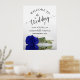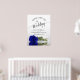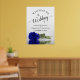 Presenta tu celebración boda con estilo con este impresionante cartel. Su diseño es a la vez sofisticado y sobrio, con delicada caligrafía de guión y un elegante rosa de color azul real o cobalto de tallo largo reflejado en un estanque de agua, con olas y ondas. Esta exquisita pieza es el toque perfecto para saludar a sus huéspedes en su día.