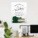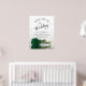 Presenta tu celebración boda con estilo con este impresionante cartel. Su diseño es a la vez sofisticado y sobrio, con una delicada caligrafía de guión y un elegante rosa de color verde esmeralda de tallo largo reflejado en un estanque de agua, con olas y ondas. Esta exquisita pieza es el toque perfecto para saludar a sus huéspedes en su día.