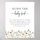 Elegante Rótulo Baby Shower. Este elegante cartel de juego de Baby Shower con flores silvestres "adivinen el bebé de comida" presenta una hermosa acuarela color rosa rubor pintada a mano, azul polvoriento y flores verdes de salvia prensadas con texto negro sobre un fondo blanco. Buscar elementos coincidentes en la colección de Baby Shower Wildflower.