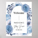 Bienvenidos a su ducha de bebé con este elegante cartel floral azul. Con un impresionante arreglo de flores acuáticas en tonos azules, este cartel de personalizable le da un toque personal a su evento. Perfecto para saludar a los huéspedes y marcar el tono para una celebración memorable, este cartel de bienvenida está diseñado con un diseño moderno en arco y es adecuado para cualquier tema de ducha para bebés. Personaliza los detalles para que sea único suyo.